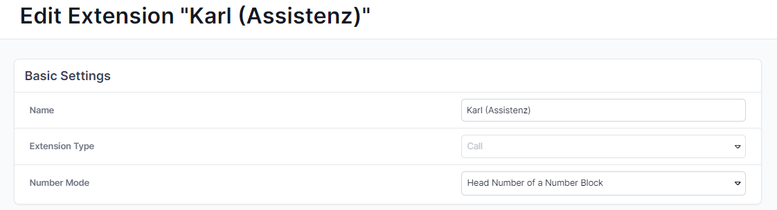 Call number mode: In "Header number of a number block" mode, call numbers and number blocks can be extended with extensions and thus several extensions can be operated via one trunk.