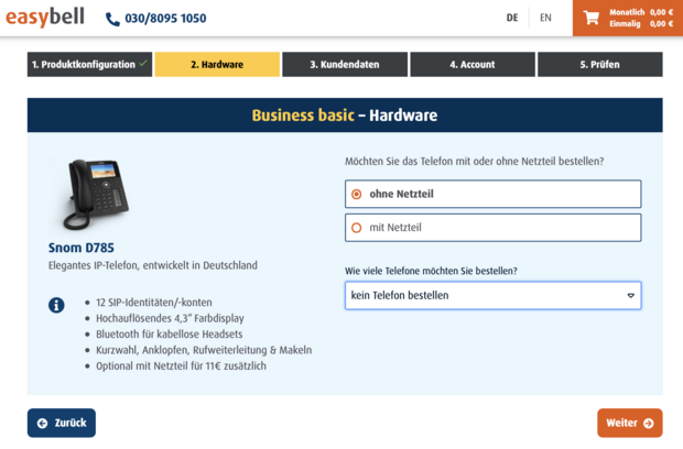 With business tariffs, you can order suitable IP telephones in the next step. The offer may vary depending on the tariff and availability.