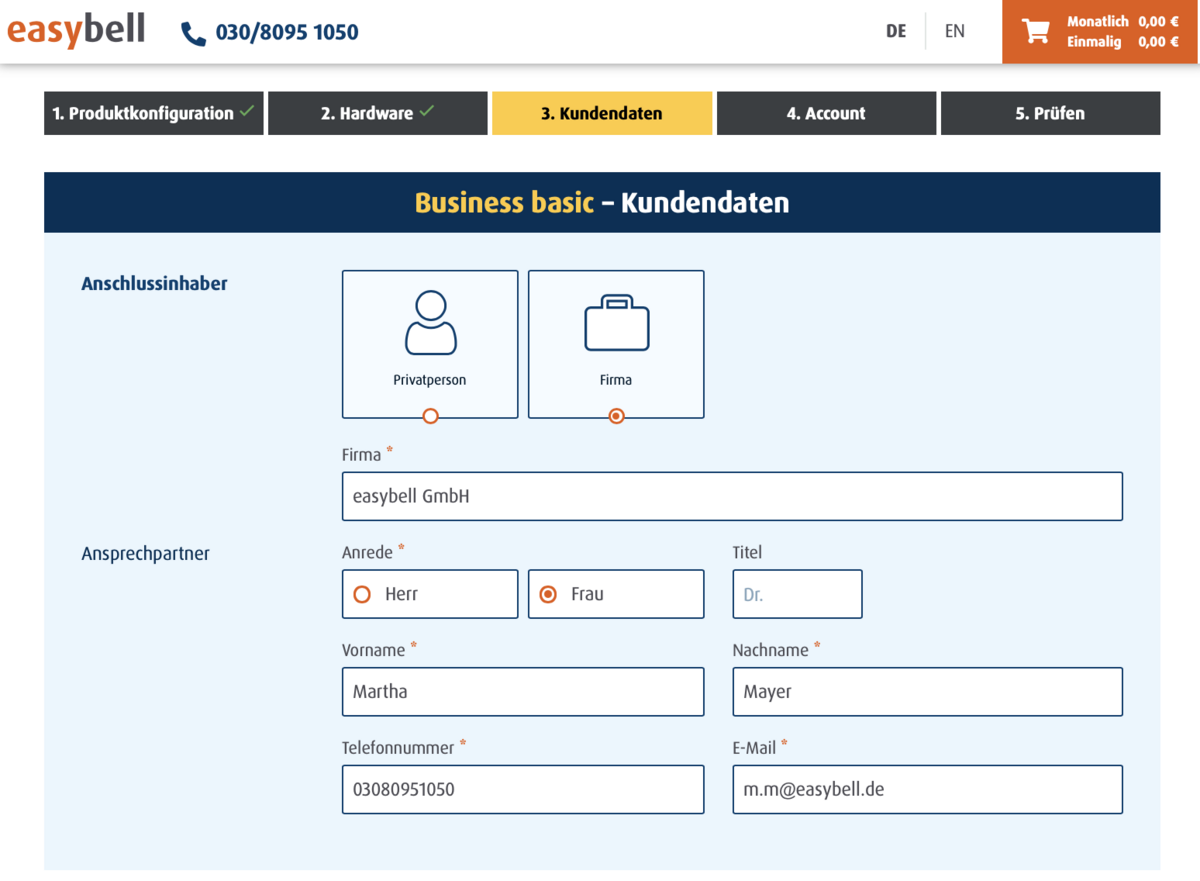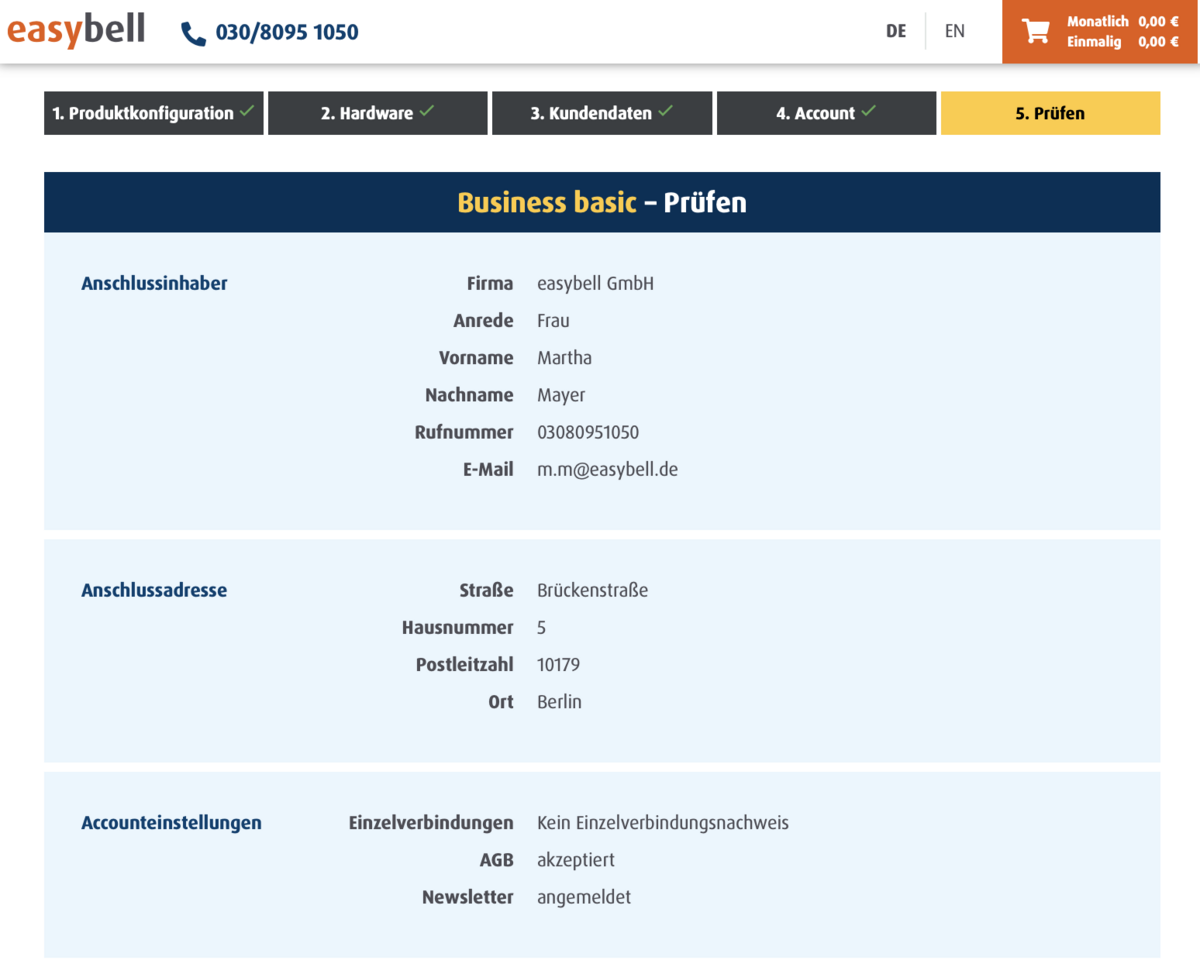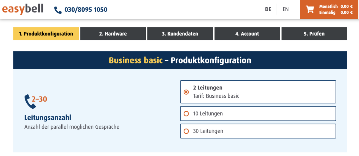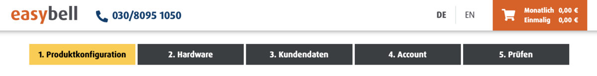 The easybell ordering process takes you to your individual tariff in five simple steps.