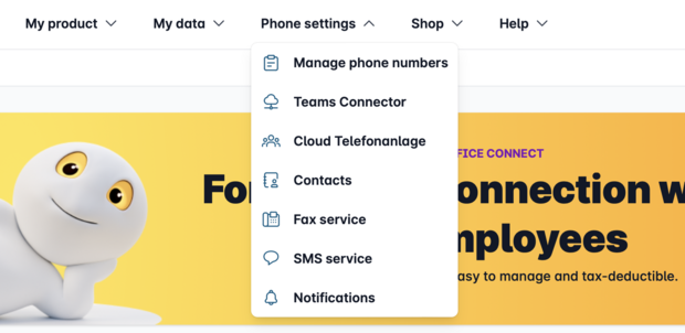 First, please open your customer portal and go to "Manage phone numbers" in the "Phone functions" section.